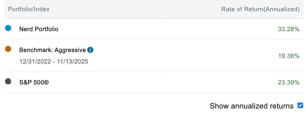 Portfolio Change & Performance Update Bradley Freeman Nov 14, 2025 3 min read Table of Contentsa. Updated Performanceb. Portfolio Changec. Updated Holdings a. Updated Performance