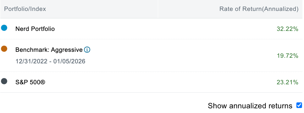 Year-to-date is off to a good start but it has been just a few meaningless sessions. I'll start sharing that in 2026 updates in a few weeks.