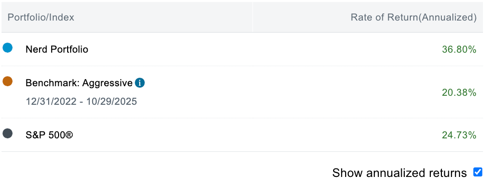 Photo by Markus Winkler / Unsplash Portfolio & Performance Updates 30 October 2025 2 min read a. Updated Performance vs. the S&P 500Performance since inception: