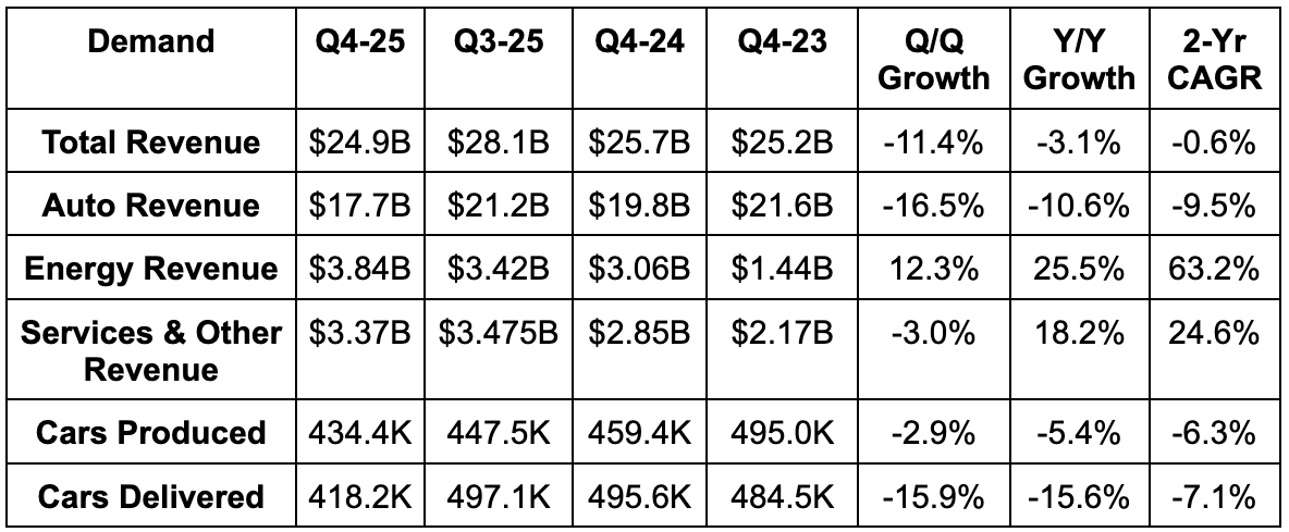 - Services & other GPM fell from 10.5% to 8.8% Y/Y due to costs to support Robotaxi’s launch.