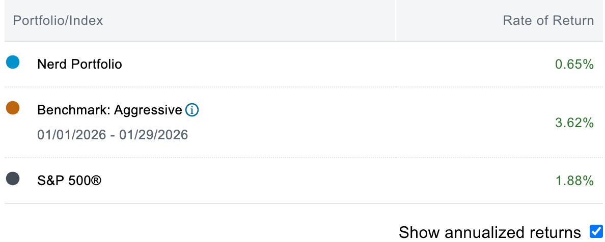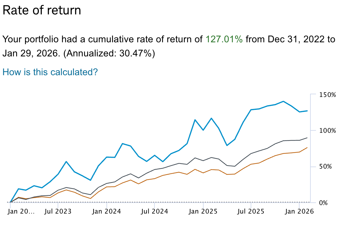 Photo by Kelly Sikkema / Unsplash Portfolio & Performance Updates 30 January 2026 2 min read a. Updated PerformanceOverall:Year-to-date:b. Portfolio Changes