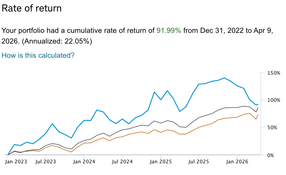 Portfolio & Performance Updates (2 New Buys) Bradley Freeman Apr 10, 2026 5 min read Table of Contentsa. Performanceb. Transactionsc. Portfolio Management Strategyd. Holdings a. PerformanceOverall performance: