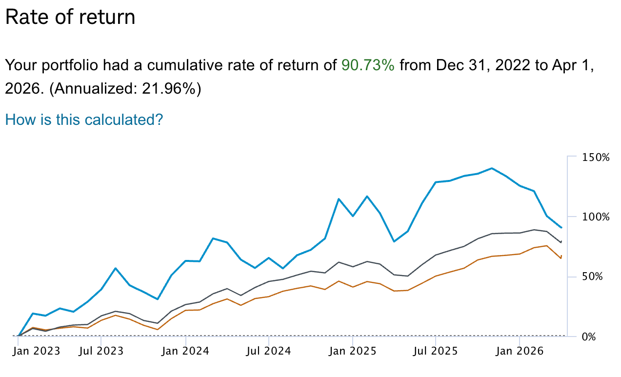 Photo by Lucrezia Carnelos / Unsplash Portfolio & Performance Updates 2 April 2026 2 min read a. Updated PerformanceOverall: