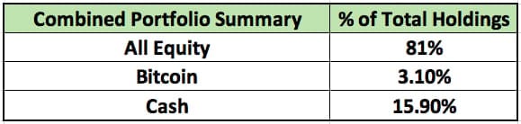 The 81% from “all equity” represents the total ownership from both equity portfolios depicted above. I consider my 15.9% cash position available for accumulating shares in both of my equity buckets. It is not split into different groups but accounted for as one cash position.