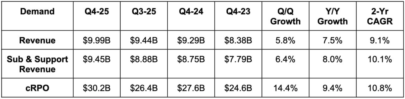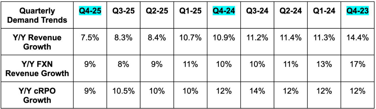 - Slightly beat Current Remaining Performance Obligation (cRPO) estimates by 0.2%.