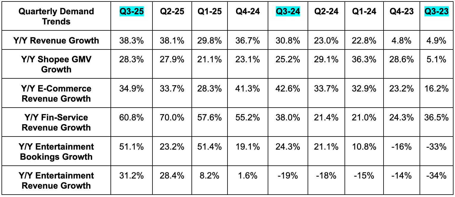 SE trades for 37x forward EPS. EPS is expected to grow by 160% Y/Y this year, by 44% Y/Y next year and by 38% Y/Y the year after. Those growth estimates may fall a bit following this report, but I don’t expect anything too drastic.