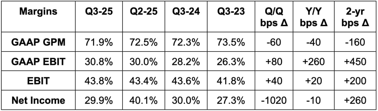 - Diluted share count rose by 2% Y/Y.