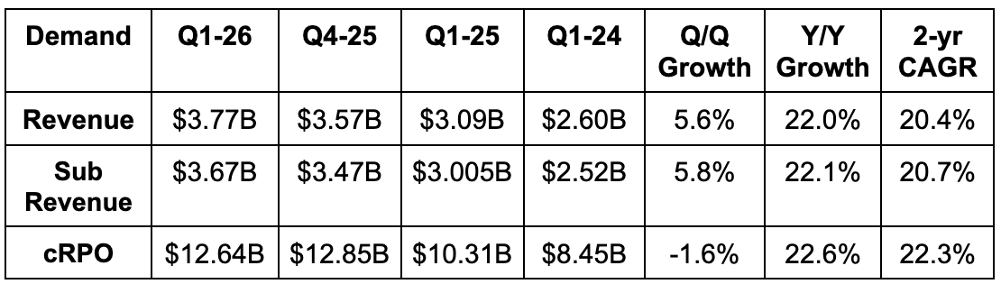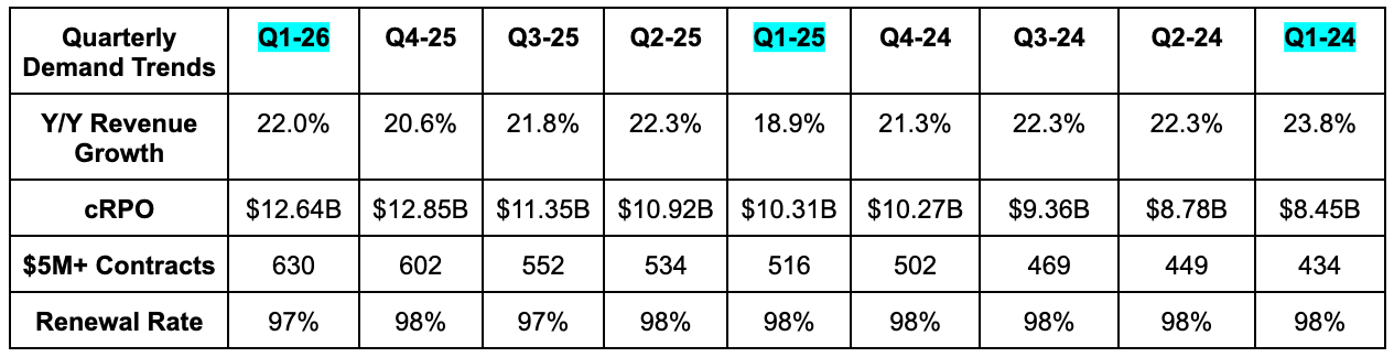 - 21% Y/Y CC cRPO growth beat 20% guidance and beat 20.6% growth estimates.