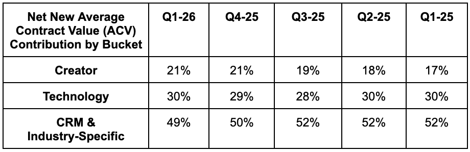 - Subscription revenue growth was held back by ~150 bps via a shift from self-hosted to hosted revenue.