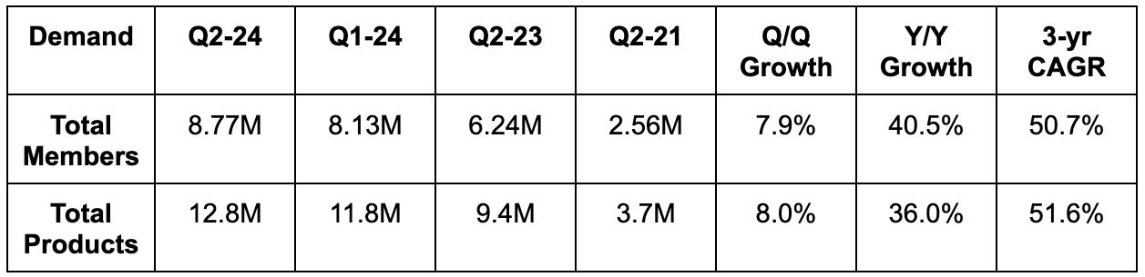 That will not last forever. SoFi balance sheet optimization is wrapping up, with 80% of its credit book is now deposit-funded vs. an 80%-90% optimal target range. This should mean a normalization in net interest income growth that more closely matches member and product growth. Considering the chart below, and guidance of 30%+ Y/Y member growth for 2024, that’s just fine.
