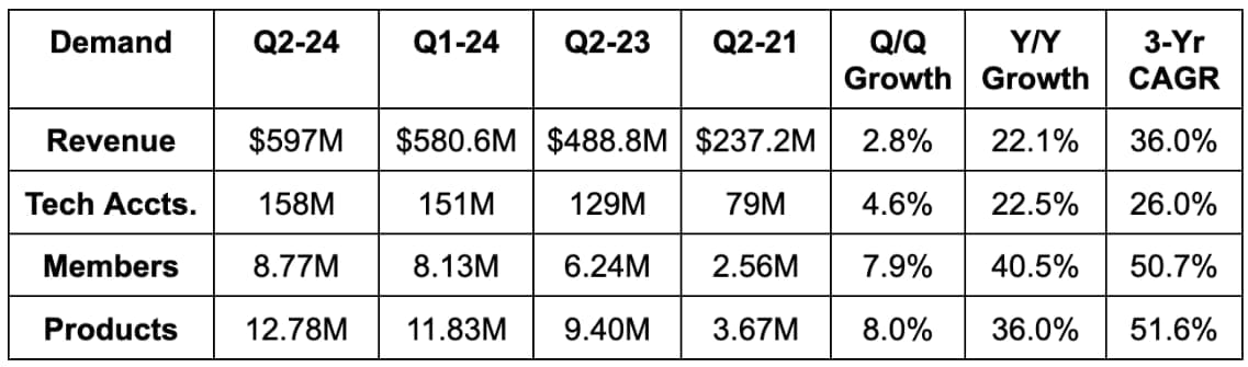 SoFi beat revenue estimates by 5.3% & beat its guidance by 6.6%. Its 36% 3-year revenue compounded annual growth rate (CAGR) compares to 39% Q/Q and 48% 2 quarters ago. Product growth, excluding its exit from the crypto business due to getting its bank charter, rose 43% Y/Y. 40% of all new products were opened by current SoFi members during the quarter as the cross-selling machine hums. Net interest income rose 42% Y/Y to $412.6 million.