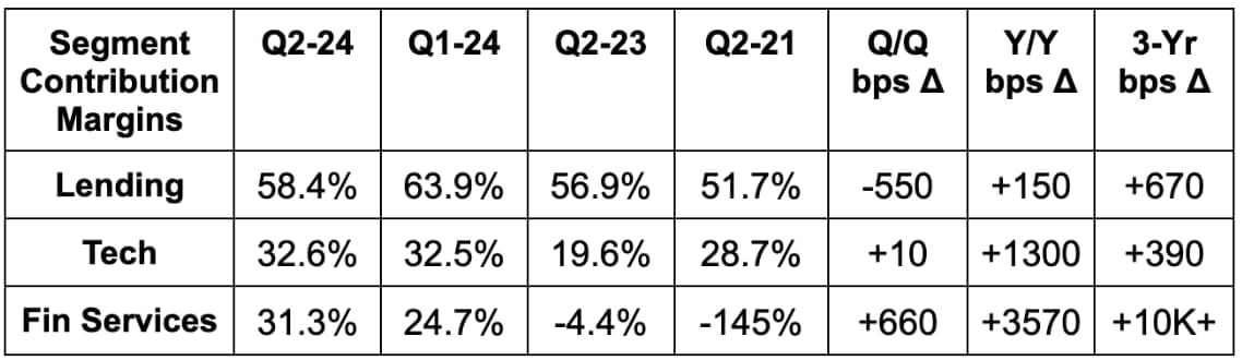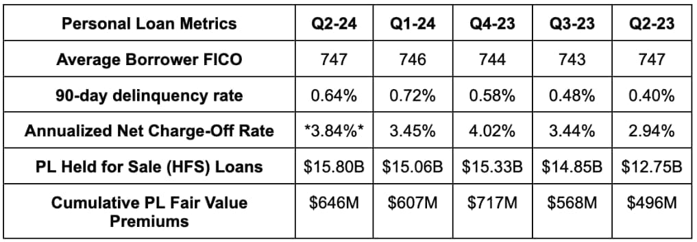 SoFi Plus, its premium membership program, crossed 1 million total members this quarter. Interestingly, SoFi will create a new membership tier allowing folks without direct deposit to pay a monthly fee for access to its 4.6% savings yield. This is basically Robinhood Gold. For self-employed people like me, this should be a material unlock for attracting more deposits. Lastly on credit cards, SoFi’s 10% cashback boost for plus members is yielding “positive results” early on. Sofi is also testing two cards starting this week: One with attractive cashback rewards and one with zero surprise fees. Generally speaking here, credit card delinquency and roll rates are both 20% better vs. 2023. SoFi is getting closer to gaining the underwriting confidence needed to accelerate issuance here. It thinks its credit and its brokerage products together can eventually be larger than the firm’s entire current revenue base. That’s why it’s intentionally incurring $100 million in annual losses to nurture these newer bets and maximize success probability. Credit card losses can turn sour rapidly; you must be sure that you have figured out underwriting before you lean in. This is rational.