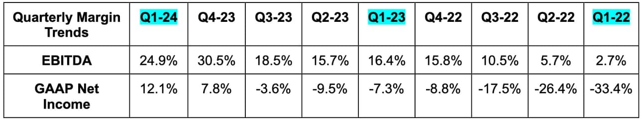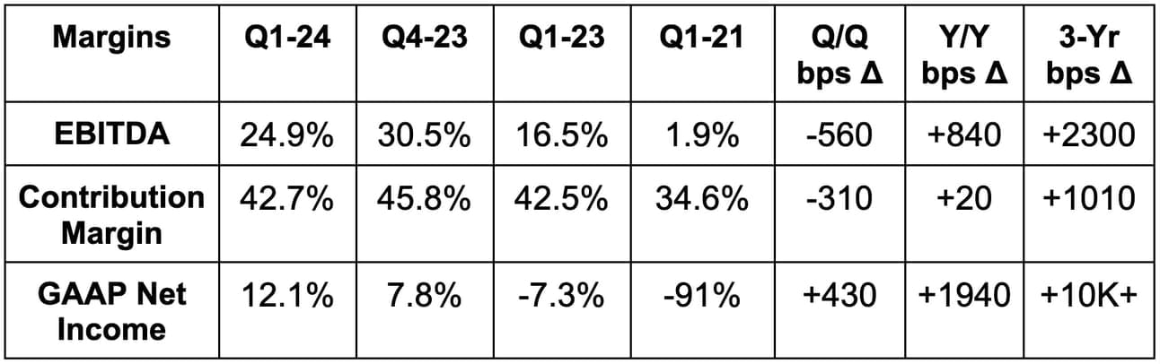 - Beat EBITDA estimates by 23.2% & beat guidance by 25.5%. Its incremental EBITDA margin for the quarter was 57%.