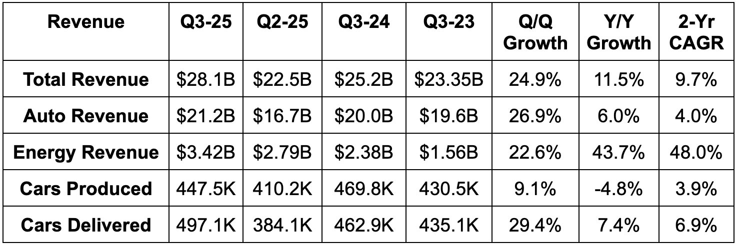 - Beat auto revenue estimates by 12%. Regulatory credits were 4% larger than expected.