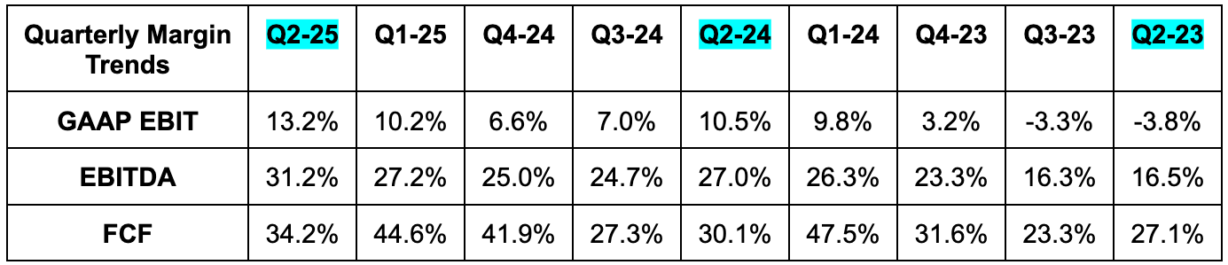 - Its 41.1% 2-year revenue compounded annual growth rate (CAGR) compares to 39.2% Q/Q & 42.1% 2 quarters ago.