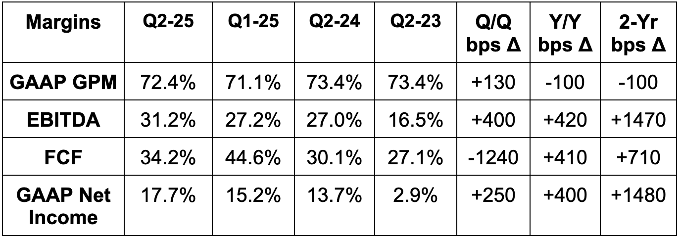 - Beat revenue estimate by 4.9% & beat guide by 5.1%.