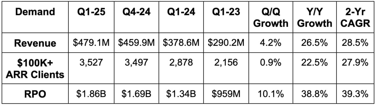 - 111% net revenue retention vs. 111% Q/Q & 115% Y/Y.