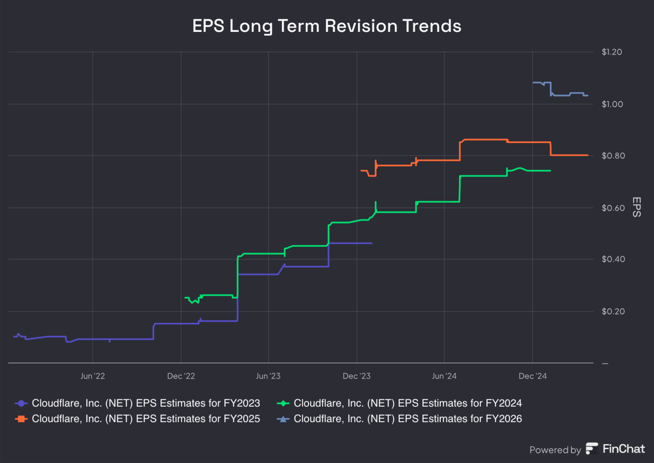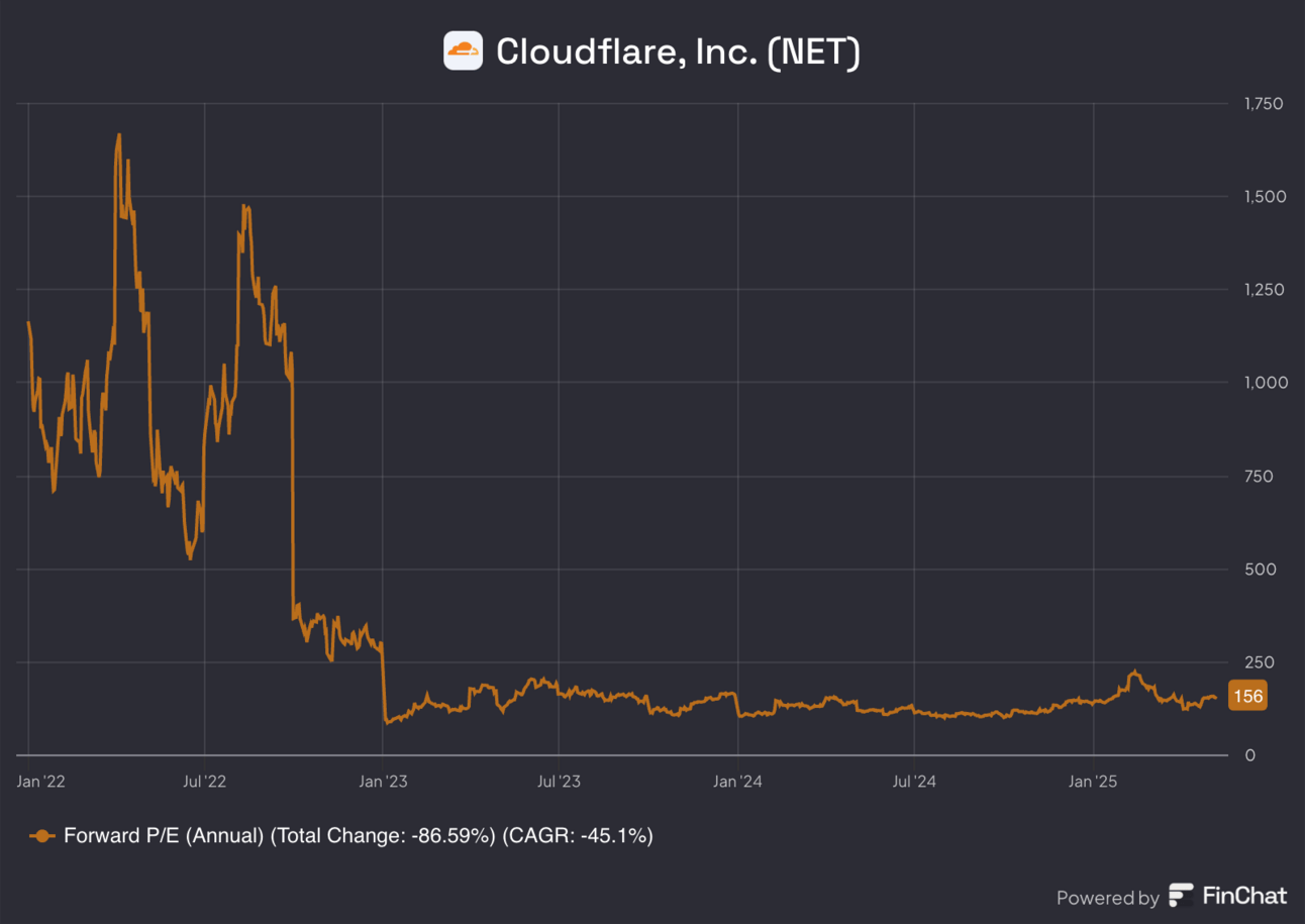 NET trades for 152x forward EPS and 181x forward FCF. EPS is expected to grow by 6% this year and by 30% next year. FCF is expected to compound at a 40% clip for the next two years.