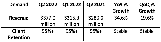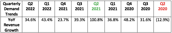 - This quarter represents The Trade Desk’s toughest pandemic-related YoY comp as it grew sales by over 100% in Q2 2021. Regardless, it grew revenue well above its long term ~25%-30% average.