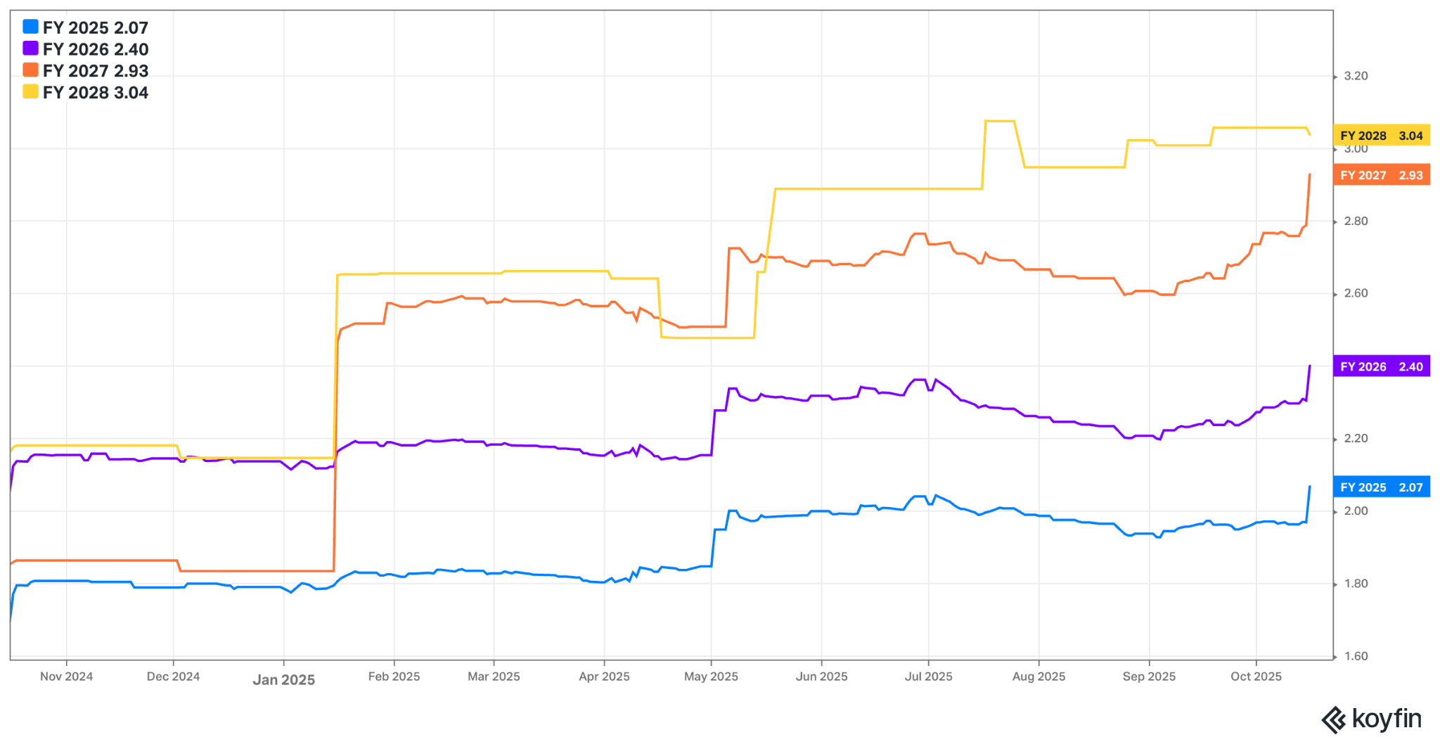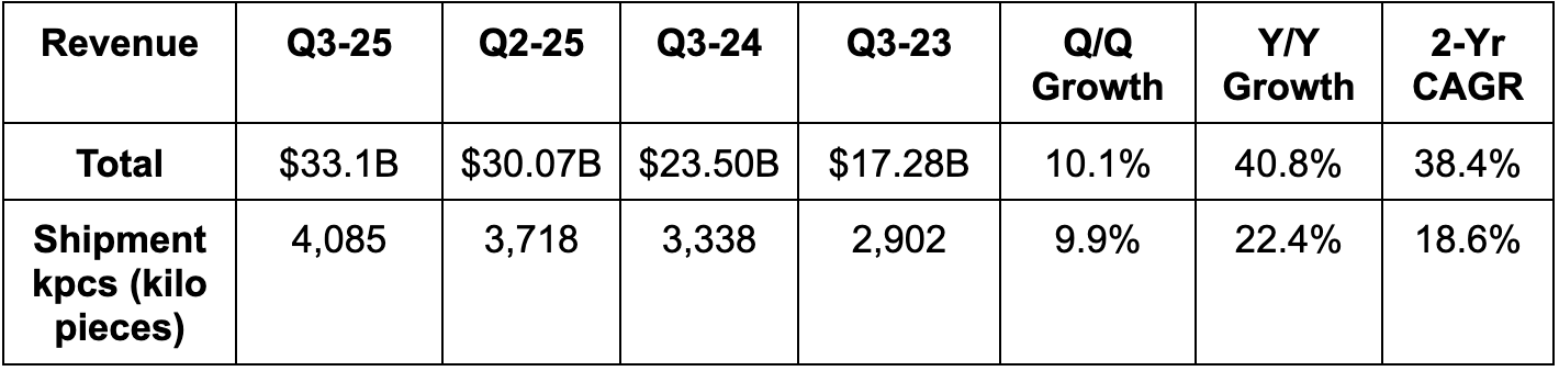 Tariffs have had zero impact on the company’s demand. They also have high confidence in AI growth remaining rapid even if China slows due to any trade drama. Despite this financial obstacle not manifesting, they continue to be conservative in forward guidance, which could set them up for another easy quarter of beating and raising.