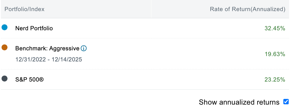 Two Position Exits & Performance Updates Bradley Freeman Dec 15, 2025 3 min read a. Updated Performance vs. the S&P 500