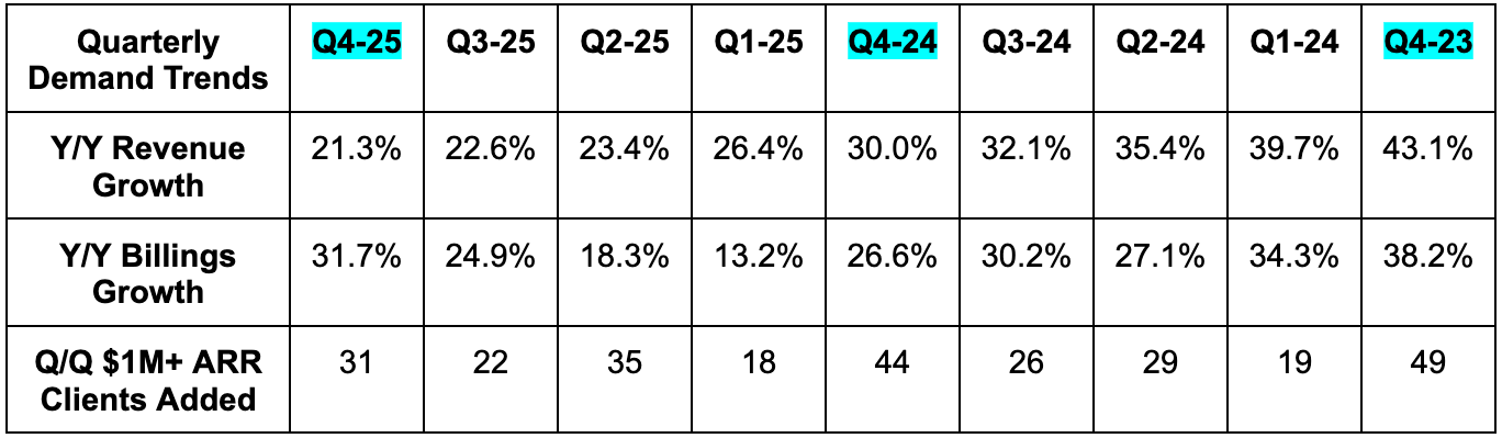 - Beat billings estimates by 5.3% & beat guidance by 5.3%.