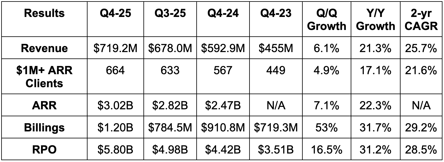 As a reminder, annual recurring revenue (ARR) is a new company disclosure. It’s moving focus away from billings and towards that, which is something I support. Better metric from this type of business. $1M+ ARR customers rose 18% Y/Y.
